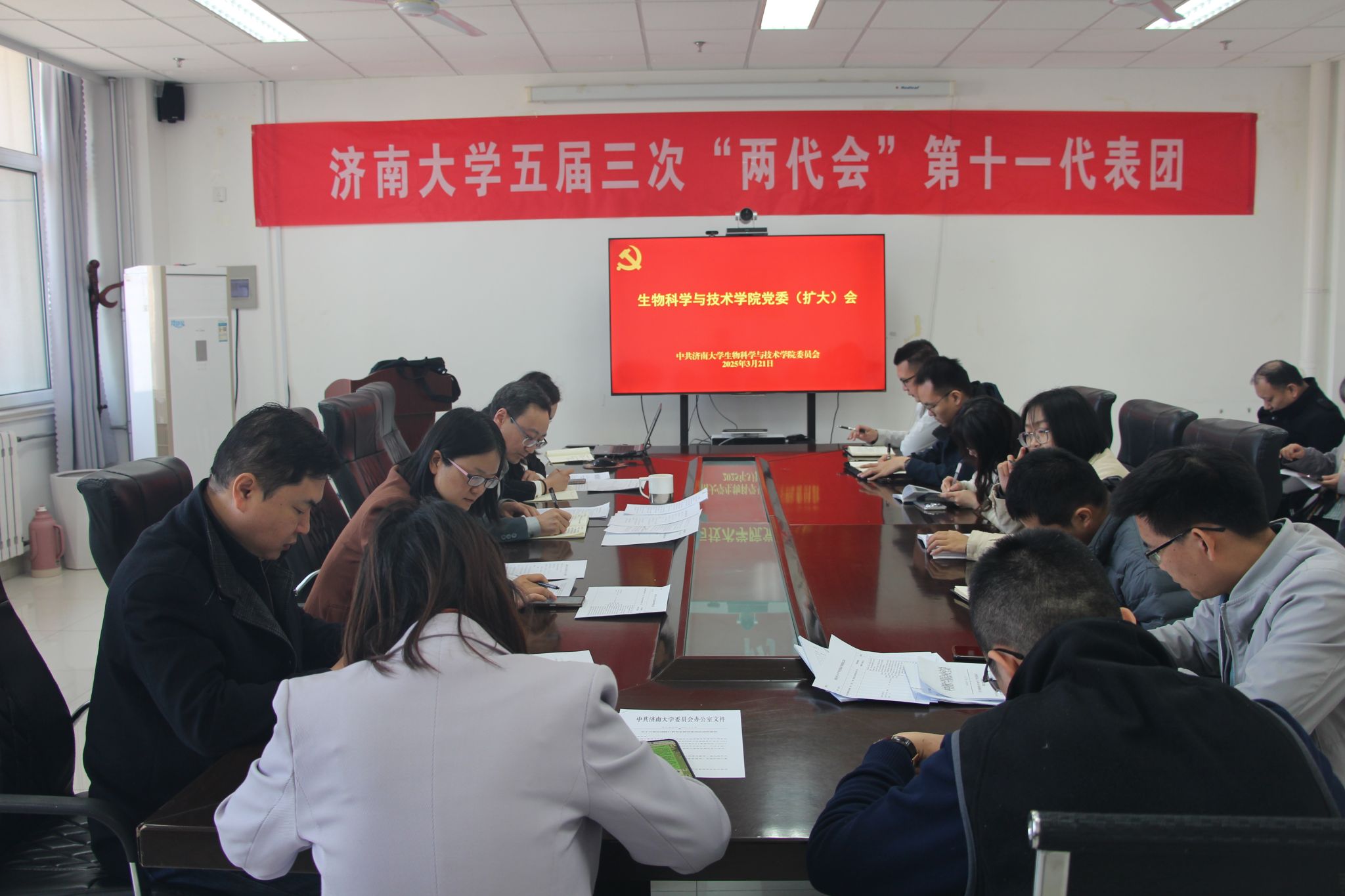 3月21日,今年会jinnian官网召开党委(扩大)会暨党委理论学习中心组学习(扩大)会议,学习中央八项规定精神,并部署深入贯彻中央八项规定精神学习教育工作。学院全体班子成员、各党支部书记、组织员、科级干部、系主任、辅导员参加会议。会议由学院党委书记史国普主持。