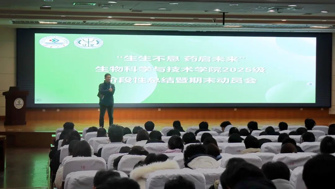 此次2025级阶段性总结暨期末动员会的成功召开,不仅系统复盘了2025级学子的阶段性成长,为期末冲刺明确了方向、凝聚了力量,更以安全教育筑牢了成长根基,让“生生不息 药启未来”的信念愈发坚定。愿2025级生科学子带着学院和老师的期许,坚定脚步,步履不停,生生不息,用青春之力书写“药启未来”的精彩答卷!