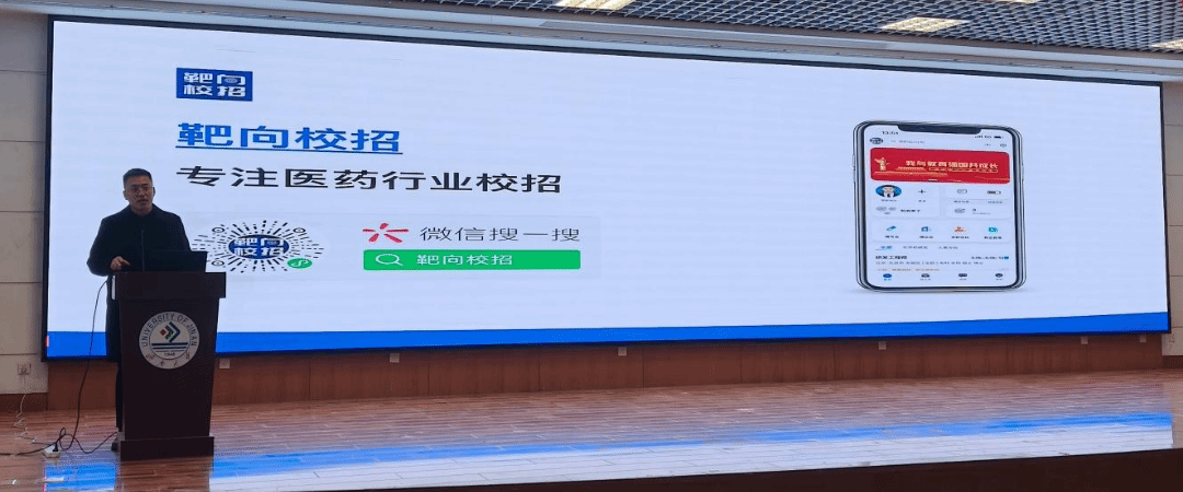 会议第二阶段为企业招聘宣讲。学院邀请鲁南制药集团股份有限公司、山东百诺医药股份有限公司、山东朗诺制药有限公司相关负责人进行招聘宣讲,有效增进了毕业生对业内不同领域岗位的认识,帮助毕业生精准定位。宣讲会后,部分毕业生主动与用人单位沟通交流,达成初步就业意向。此外,学院邀请山东瑞鑫未来教育科技有限公司项目经理对医药行业校招平台“靶向校招”进行介绍,包括平台的常用功能、平台近期将会举办的大型活动、平台的注册流程以及企业面试技巧等方面,帮助同学们更好地了解企业招聘的关注点,为同学们的就业面试提供了指导思路和与企业联系的平台。