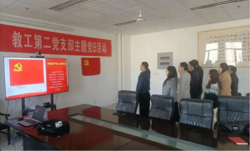 为提升党员党性修养,弘扬伟大建党精神,激励党员坚定理想信念,铭记初心使命,12月18日,今年会jinnian官网教工第二党支部举办“预备党员入党宣誓”主题党日活动。在鲜红的党旗前,支部书记樊祥宇带领新发展的预备党员王文波和支部其他党员,面向党旗,紧握右拳,庄严宣誓。这一神圣时刻,充分体现了新老党员对党组织的忠诚和对共产主义事业的坚定信念。宣誓仪式不仅是对新党员的政治洗礼,也为在场的教工党员注入了一股崭新的力量。