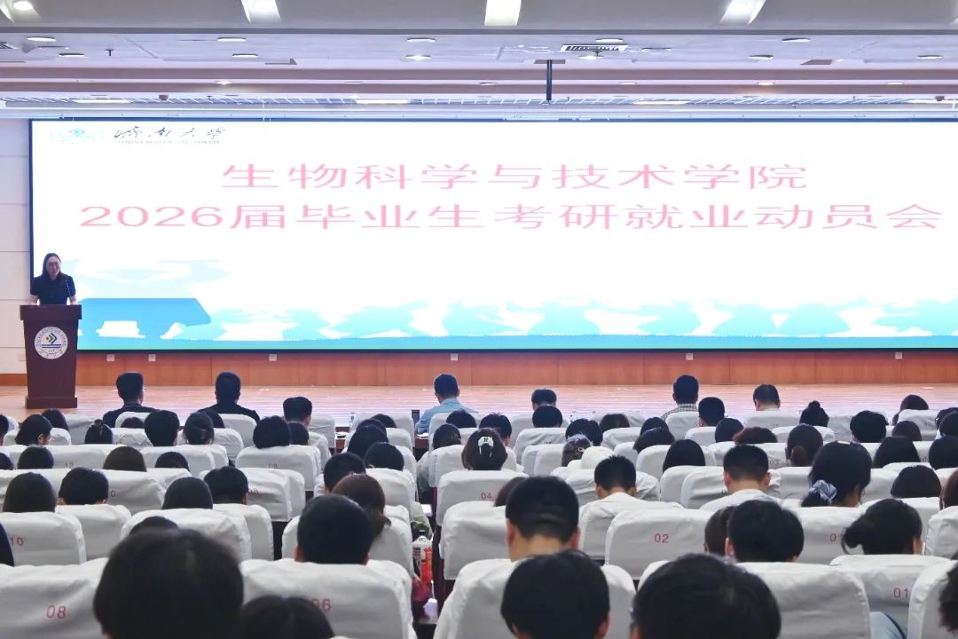 学院党委书记史国普在总结中回顾了2026届毕业生入学以来在各项活动、赛事中取得的丰硕成果,向积极求职、勤奋备考的学生表达了美好的祝愿、提出了殷切的期望。他谈到,学院一直以来高度重视毕业生考研就业工作,近年来就业率、考研率稳中有升,希望同学们能够择国所需、择己所长,合理规划人生方向,全面提高自身素养,勇于担当青年使命,在时代的广阔舞台上书写生科学子的青春华章。