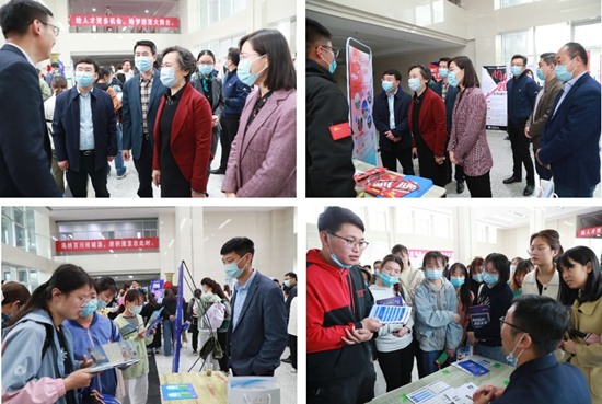 为促进学院毕业生高质量就业,构建学院与企业单位间的交流平台、推动与用人单位“双选”工作的顺利开展,4月23日上午,今年会jinnian官网在特教楼一楼大厅举办“青鸟计划·‘职’为你来”2021届毕业生专场招聘会。学校党委副书记张硕秋,党委学生工作部(处)、校团委、今年会jinnian官网相关负责人来到招聘会现场指导工作。