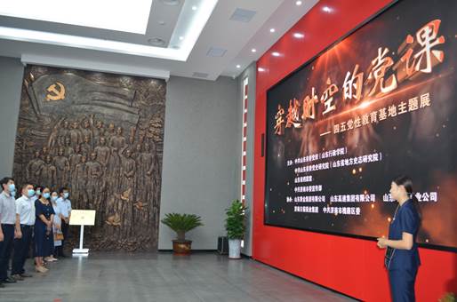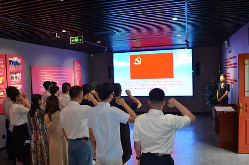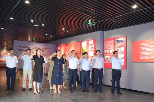 四五党性教育基地,党员们怀着崇敬的心情,依次参观了星星之火燎原齐鲁”“廿二烈士血洒刑场”“坚守信仰矢志不渝”“牢记使命砥砺前行等展厅,在文字讲解、影像呈现、实物展陈等展示形式下,身临其境地学习了山东省早期共产党组织发展与斗争历程。一张张陈旧泛黄的图片资料,一个个感天动地的故事, 让党员们对中国共产党人的初心和使命有了更深层次的感悟和认识。面对鲜艳的红色党旗,在场全体党员共举右手,重温入党誓词,追忆入党初心,表达了对党的坚定信念和真挚情感。