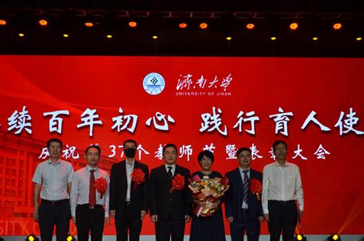在2018-2020年期间教学科研工作受到学校奖励,并作为代表上台领奖的老师:孙翔玲,2019-2020年度济南优秀教育工作者;李强, 2020年度挑战杯中国大学生创业计划竞赛银奖指导教师;王元秀,今年会jinnian官网教学名师及2018年度“创青春”全国大学生创业大赛银奖指导教师;江成世,2019年度山东省优秀研究生指导教师;樊祥宇,2019年度“挑战杯”中国大学生课外学术科技作品竞赛二等奖指导教师。