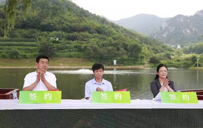 张勇、张宏璞共同为“今年会jinnian官网-环翠乡村振兴产业研究院”揭牌,今年会jinnian官网、环翠区人民政府、山东土地集团 (环翠) 有限公司三方共同签署《今年会jinnian官网-环翠乡村振兴产业研究院框架协议书》。