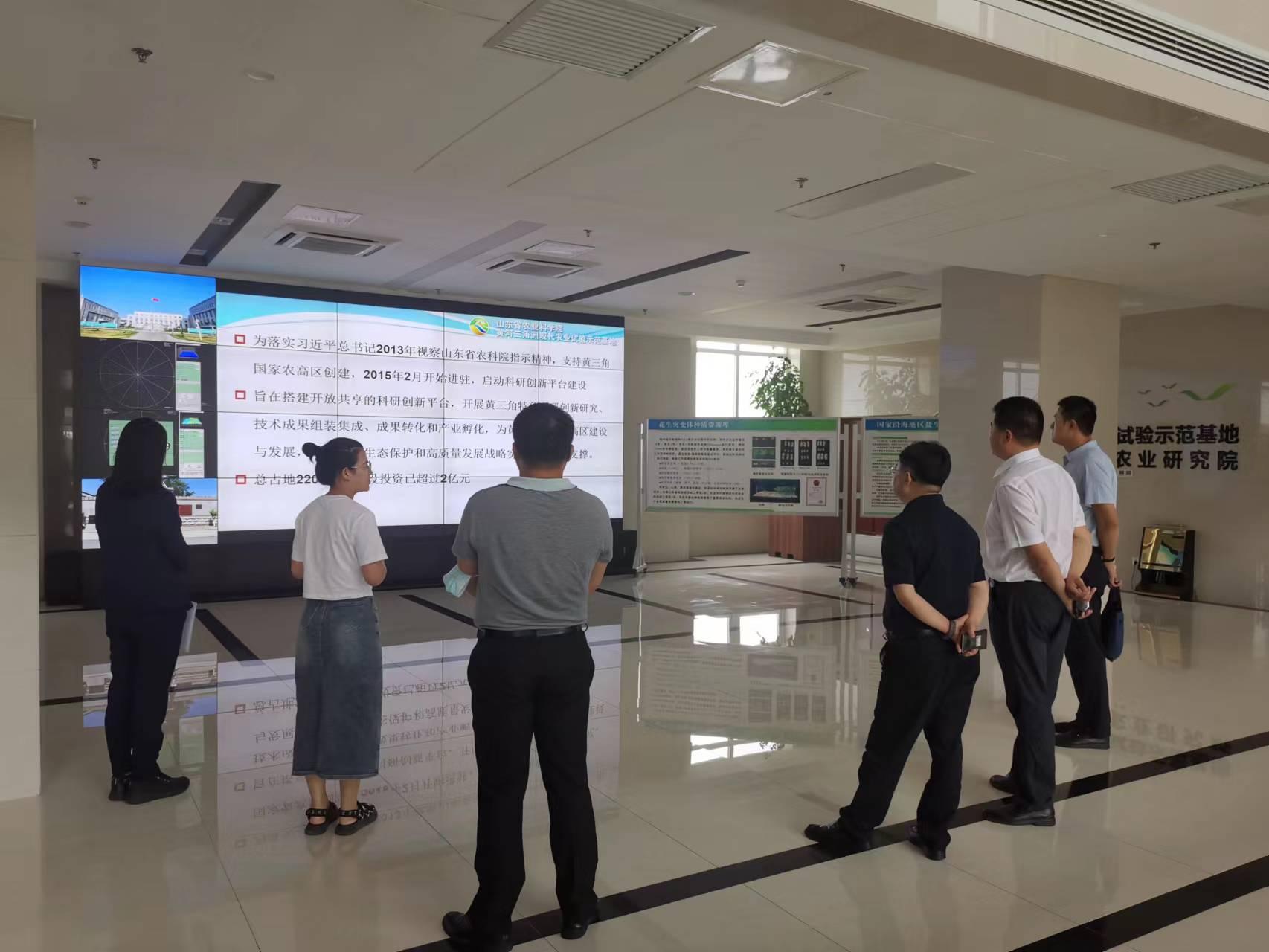 下午,黄三角农高区管委会经济发展与投资促进局四级调研员、山东盐碱地现代农业有限责任公司负责人业徐黎明、农村局相关人员,陪同学院一行到农高区和山东省土地发展集团合作共建的黄三角生物遗传与分子精准育种实验室、初心初本农业科技公司、山东省农业科学院黄河三角洲现代农业研究院进行实地考察和座谈交流。