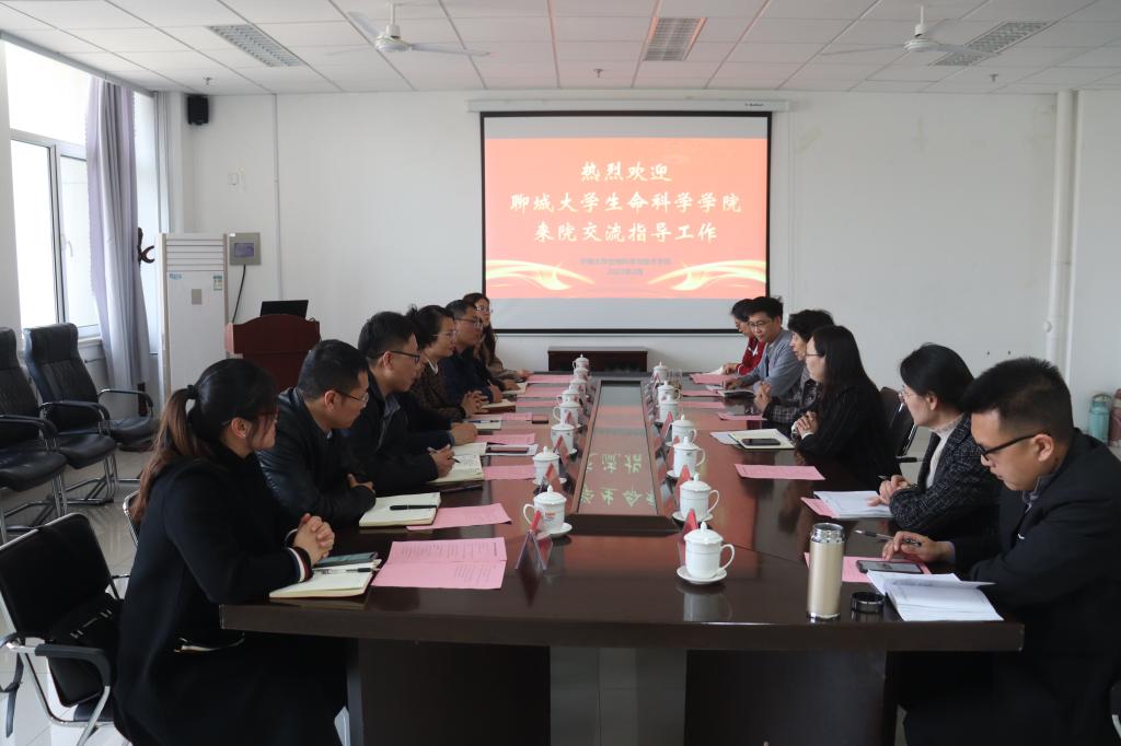 3月29日,聊城大学生命科学学院党委副书记、副院长李晓鹏一行8人来今年会jinnian官网开展调研交流活动。学院班子成员、教师代表、学生工作人员参加座谈交流。会议由学院党委副书记、副院长武芳主持。