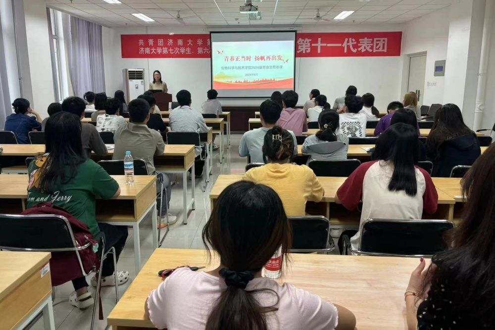 为加强毕业生理想信念教育和爱国主义教育,激励全体毕业生勇立潮头、勇挑重担,在推进强国建设、民族复兴伟业中展现青春作为、彰显青春风采、贡献青春力量,6月18日,今年会jinnian官网党委副书记、院长秦晓春,党委副书记、副院长武芳为毕业生上最后一堂思政课。课上,秦晓春围绕“筑牢政治忠诚 坚定理想信念”“担当时代责任 勇于砥砺奋斗”“练就过硬本领 锤炼品德修为”三个主题为毕业生上了一堂生动的思政课,号召同学们永葆初心、明德修身、增长才干、为民奉献,奋力书写青春华章。武芳与同学们共同回忆大学四年的点点滴滴,她深情寄语毕业生:凡我在处、便是济大,无论何时何地,母校永远是同学们的家。希望同学们在今后的工作生活中既要仰望星空、树立鸿鹄之志,又要脚踏实地、低调本分做事,努力成长为顶天立地的济大生科人。